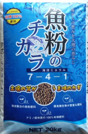 ●魚粉主体でこだわりの肥料です。
